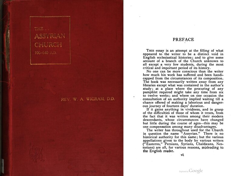 W. A. Wigram states in his preface that he uses the name “Assyrian” for the Church of the East throughout his book, but that the term has no historical authority. He also notes that other common labels such as “Easterners,” Persians, Syrians, Chaldeans, and Nestorians are, for various reasons, misleading to the English reader.