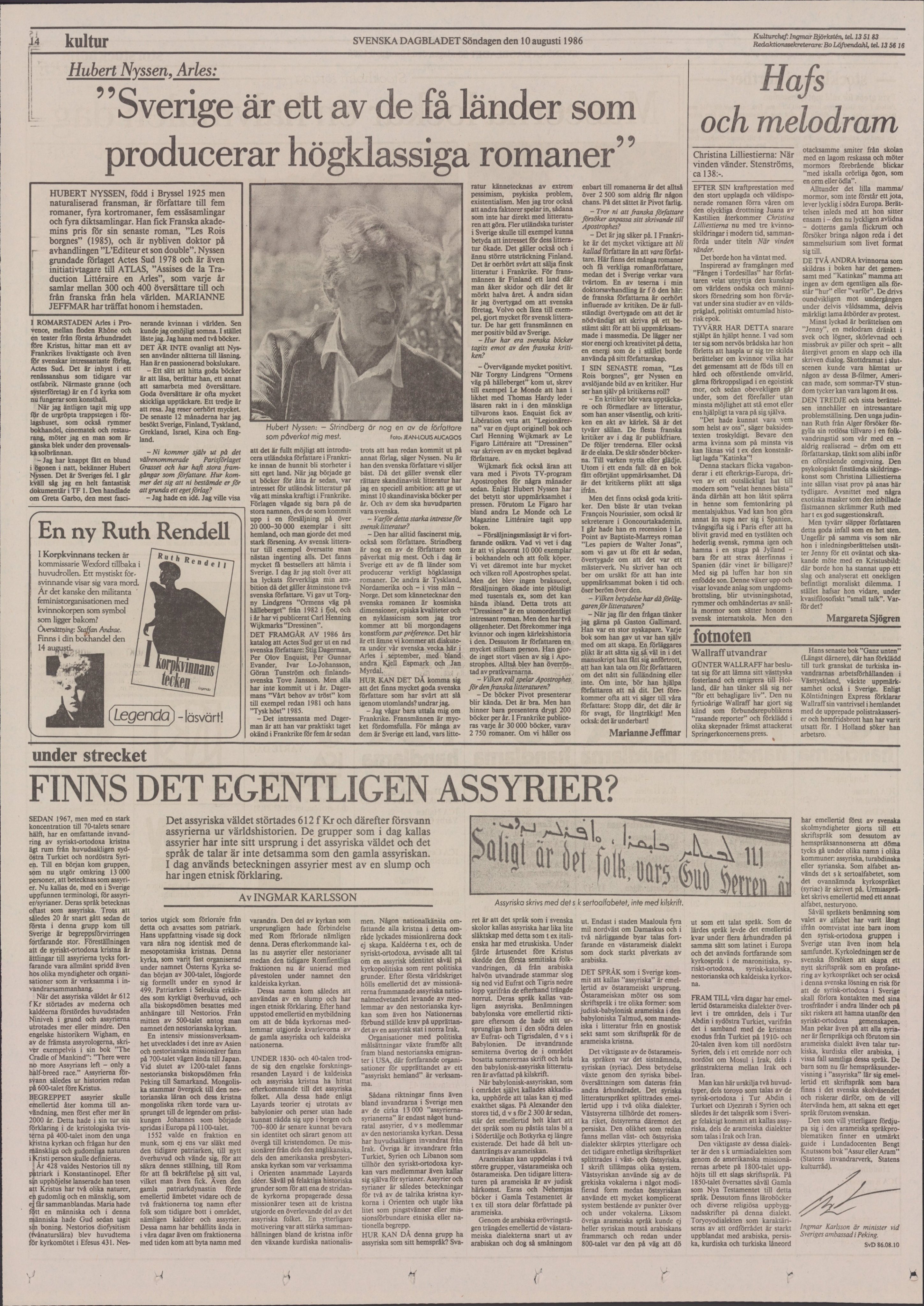 The article “Finns det egentligen assyrier?” (“Do Assyrians Really Exist?”) by Ingmar Karlsson examines the question of whether the modern people who call themselves Assyrians are in fact descendants of the ancient Assyrians of Mesopotamia, or whether the name represents a more recent historical and cultural construction.