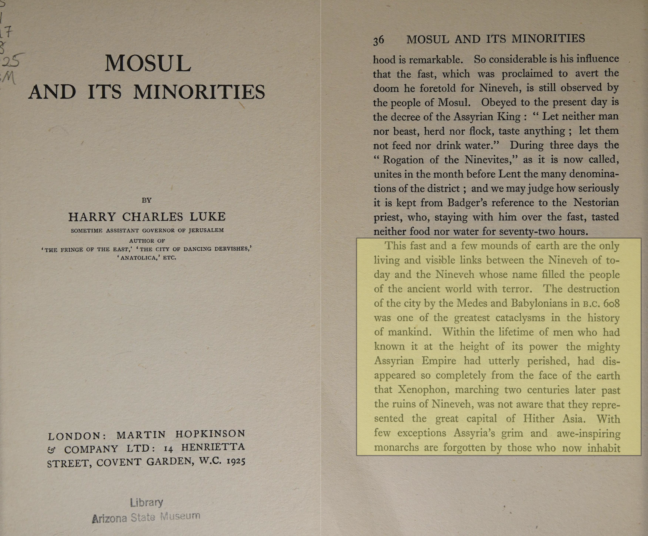 Sir Harry Charles Luke, Mosul and Its Minorities (London: Martin Hopkinson, 1925), p. 36.
