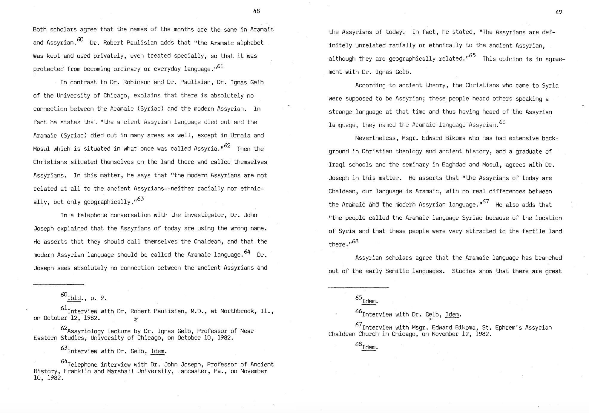 According to May Abraham’s pages (drawing on Ignace Gelb and John Joseph), the ancient Assyrian language had died out while the communities in question spoke Aramaic/Syriac; Joseph argues that today’s “Assyrians” are using the wrong name, should call themselves Chaldeans, and that what is called modern Assyrian should be called Aramaic. In this framing, “Assyrian” in the U.S. context functioned as an umbrella category that grouped Chaldeans, Jacobites, and members of the Church of the East from Iraq, Syria, Iran, Turkey, Kuwait, and Lebanon, who also used multiple everyday languages. Abraham underscores the point with two explicit claims from the text: “Assyrians today may be Kurds, Turks, etc., with little possibility that these people have some of the ancient Assyrian blood-lines,” and “The Assyrians of today are not related to the ancient Assyrians at all—racially, ethnically, nor historically” (cited by May Abraham from Dr. Kretkoff). Taken together, these statements present “Assyrian” as a modern, label-driven umbrella rather than a biologically or historically continuous identity from antiquity.