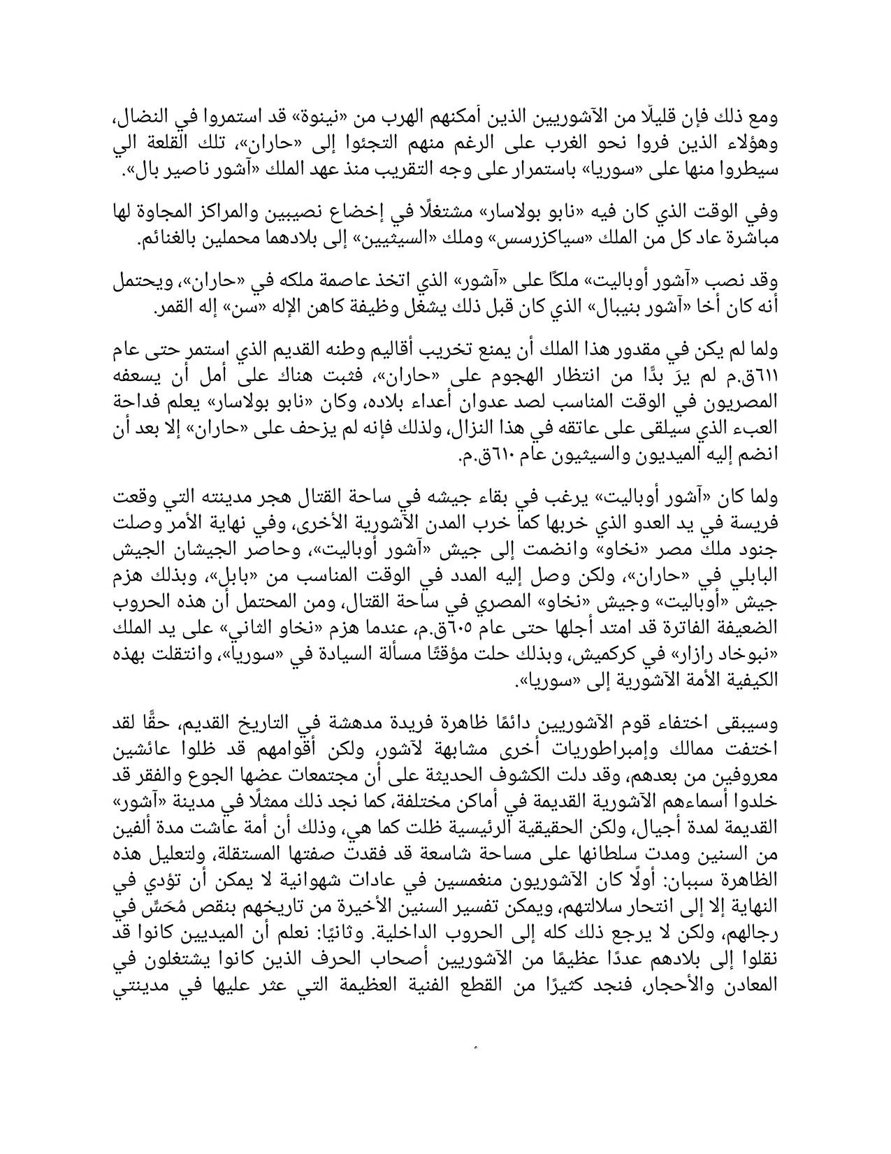 The disappearance of the Assyrians will always remain a unique and astonishing phenomenon in ancient history. Indeed, other kingdoms and empires similar to Assyria have disappeared, but their peoples have continued to live and be known after them. Recent discoveries have shown that communities ravaged by hunger and poverty have immortalized their ancient Assyrian names in various places, as we find represented in the city of “Ashur” for generations, but the main truth remained the same, namely that a nation that lived for two thousand